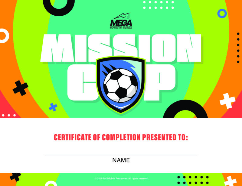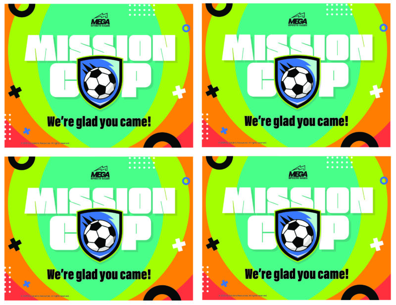 Mission Cup is a high-energy Mega Sports Camp theme that challenges kids to see their love for sports as an opportunity to live on mission for Jesus. Inspired by the excitement and global stage of the world’s biggest soccer competition, Mission Cup connects athletic passion with faith, helping kids understand that their skills, discipline, and dedication can be used to make a difference for God’s kingdom. Through the language of teamwork, training, and competition, kids are encouraged to focus on what truly matters, show respect to others, walk in humility during victory, endure through challenges, and lead with confidence and integrity – even in uncertain moments.