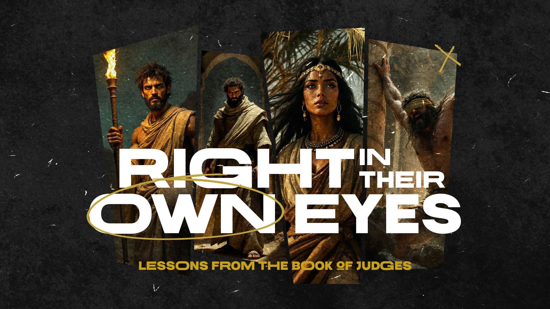 “Right in Their Own Eyes: Lessons from the Book of Judges” required a visual style that captured the tension, rebellion, and redemption woven throughout the narrative. Our team crafted a full graphics and video kit – bold title artwork, rugged textures, motion elements, and cohesive teaching visuals – that echoed the raw story of Judges while giving pastors ready-to-use media for every week of the series.
