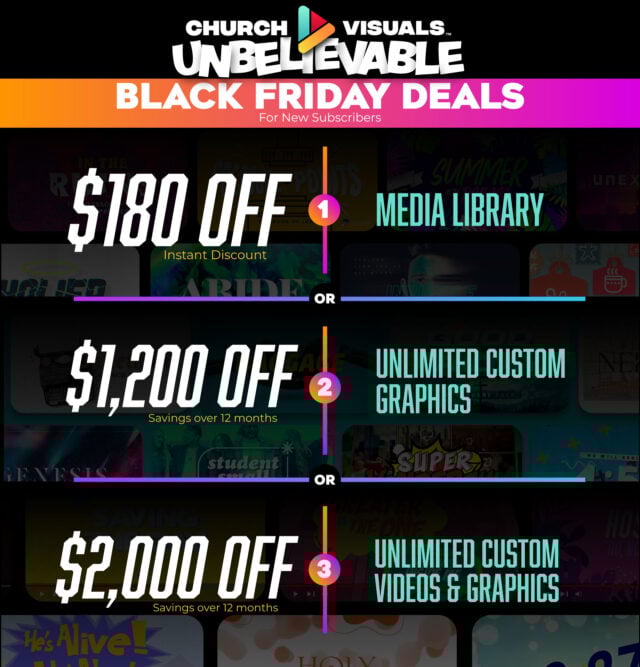 Elevate your church visuals with free access to high-quality church media and creative ministry training.