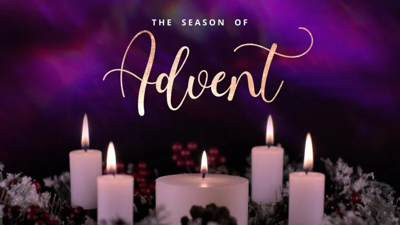 The Advent Wreath theme pack features stunning imagery of lit candles surrounded by evergreen and berries, paired with rich purple bokeh backgrounds and elegant rose gold typography celebrating hope, peace, joy, and love. This collection includes slides for all four weeks of Advent, ideal for churches observing Advent with reverence and beauty, creating a contemplative atmosphere that prepares hearts for Christ’s coming.