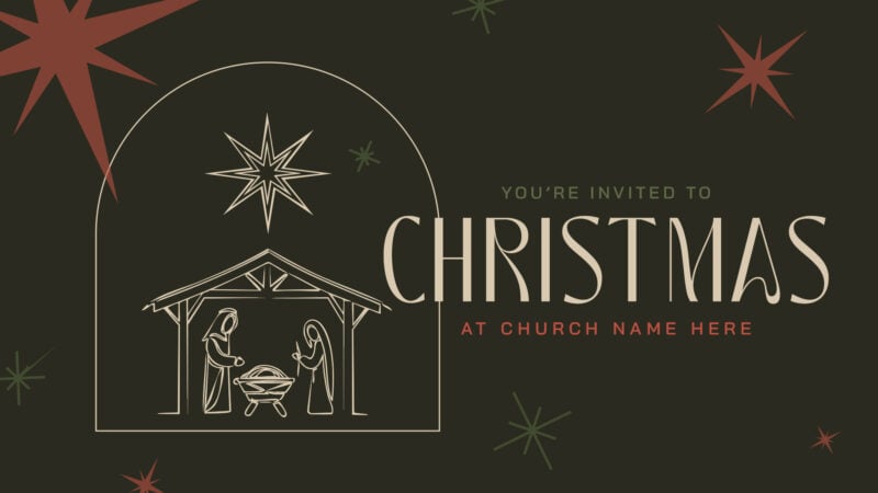 These welcoming Christmas invitation graphics combine elegant line art nativity imagery with customizable church name fields and retro-inspired design elements in sophisticated earth tones. Perfect for inviting community members to Christmas services, promoting holiday events on social media, creating shareable Instagram and Facebook posts, announcing Christmas Eve services, and making guests feel warmly welcomed to celebrate Christ’s birth at your church with a modern yet timeless design aesthetic.