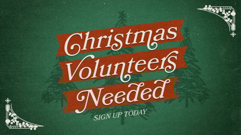 These Christmas Volunteers Needed ministry graphics feature vintage-style designs with textured green backgrounds, red ribbon banners, and elegant flourishes to recruit Christmas volunteers and promote serving opportunities during the holiday season. Includes blank template slides for customization and multiple message variations to meet different volunteer recruitment needs.
