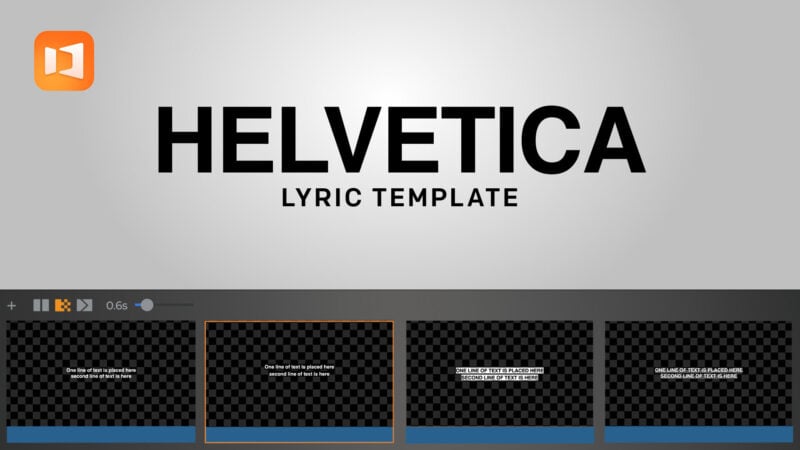 This ProPresenter lyric template features the classic Helvetica font with bold, clean typography and seven flexible text positioning options on a minimalist white background for maximum readability. Perfect for churches seeking a timeless, professional aesthetic that ensures congregations can easily read and sing along regardless of positioning needs throughout a service.